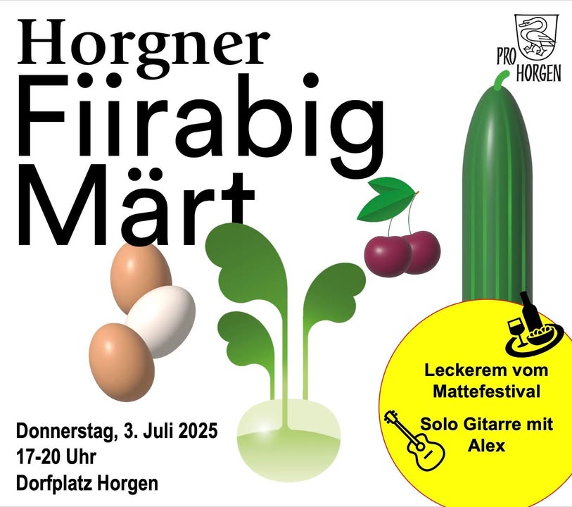 Donnerstag, 3. Juli, 17-20 Uhr, Dorfplatz Horgen