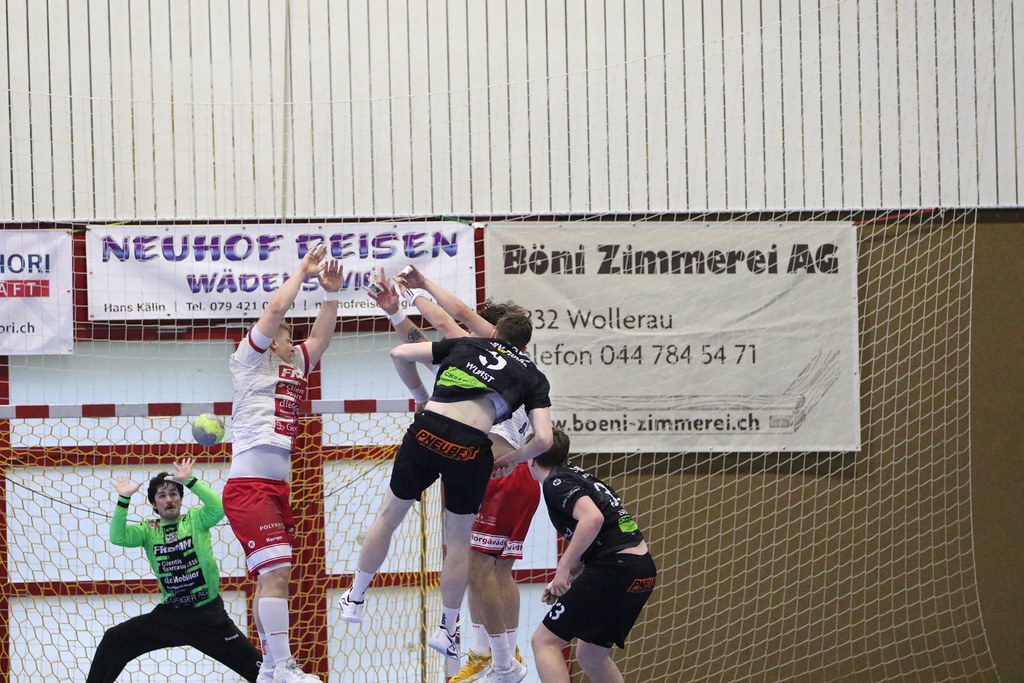 Mit dem Rücken zu Wand forderte die SG Wädenswil/Horgen im zweitletzten Heimspiel der Saison die SG Fides aus St. Gallen. «Verlieren verboten» war die Devise des Heimteams. In der trotz herrlichem Wetter gut gefüllten Horgner Waldegg legten die Teamstützen Wolfer und Wünsch gleich vor und meldeten die Ambitionen der Seebueben an. Die Platzherren zeigten ein Spiel, welches in der laufenden Spielzeit leider zu oft vermisst wurde. Mit «Härzbluet», wie es in der Halle steht, und vollem Einsatzwillen präsentierten sich die Schützlinge vom Trainerduo Kern/Kiezmann von beginn weg. Insbesondere in der Deckung wurde mit Leidenschaft füreinander gekämpft und als Verbund wurden die aufkommenden Lücken geschlossen. Die konsequente Abwehrarbeit half unbestritten auch dem Mann des Abends, Philippe Cachin. Insgesamt 15 Paraden – und damit eine Abwehrquote von 46 % – konnte er sich gutschreiben lassen. Dass er an diesem Abend den richtigen Riecher hatte, zeigte er spätestens in der 16. Minute, als er einen Penalty vom sonst sehr sicher treffenden Altinternationalen Robert Weber entschärfte und seine Vorderleute, wie auch das Publikum weiter anstachelte. Die ab der 10. Minute anhaltende 3-Tore-Führung pendelte sich so ein und wurde von Yanick Schuler kurz vor dem Pausenpfiff bestätigt, als er mit einem Konter eines seiner 6 Tore Einnetzen konnte.