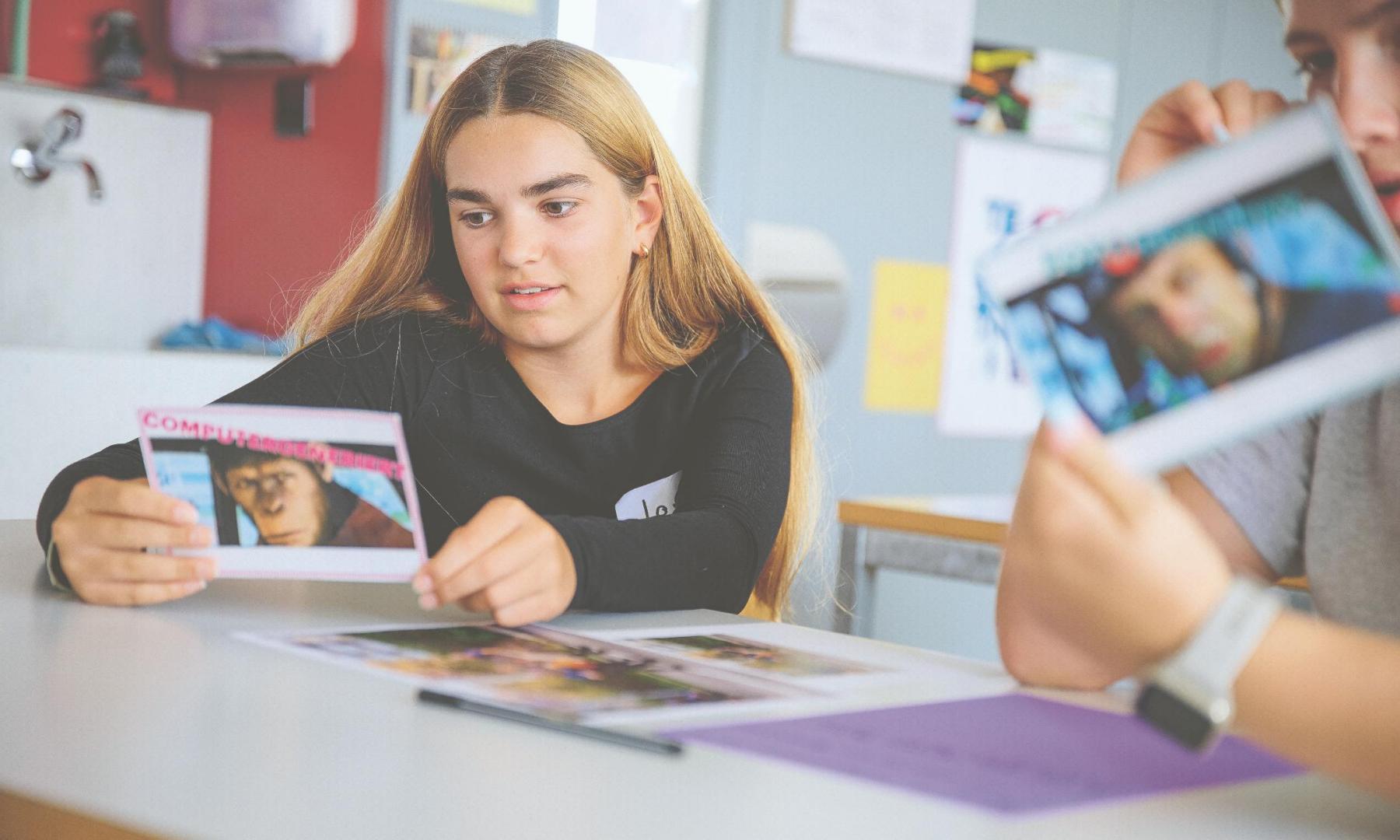 Für Stephanie Meier ist der Workshop des Fotomuseums der perfekte Einstieg in ihre Projektwoche. «Er nimmt mir unglaublich viel Vorbereitungsarbeit ab. Ich konnte einfach eine Fachperson zuziehen und finde die vielen Beispiele, die Jovana Pavlović im Kurs bringt, sehr durchdacht.» Die Lehrerin verfolgt den Workshop aufmerksam, macht sich Notizen, um später in der Woche mit den Mädchen über bestimmte Begriffe zu diskutieren. Und sie meldet sich im Workshop auch mal selbst zu Wort. Denn die Mädchen getrauen sich manchmal nicht so recht, etwas zu sagen, weil sie aus verschiedenen Klassen kommen und einander noch nicht gut kennen.