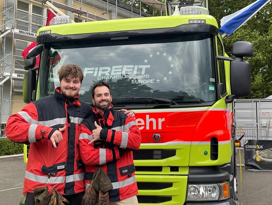 Da sind unsere 2 Männer, die sich beim Fire Fit Europe in Zürich …