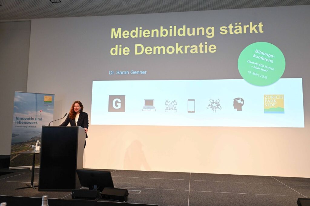 Dr. Sarah Genner betonte, dass Medienkompetenz eine zentrale Voraussetzung für demokratische Teilhabe ist. Trotz der grossen Informationsfülle seien junge Menschen heute nicht automatisch besser informiert als früher. „Medien- und Demokratiebildung sind letztlich ein Aufklärungsprojekt“, sagte Genner.