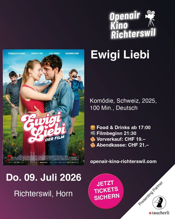 #OpenairKinoRichterswil #EwigiLiebi #MundartMusical #Richterswil #ZürichseeVibes #Sommerkino2026 #Gastromeile #SchweizerMusik #KinoAmSee #taucherli