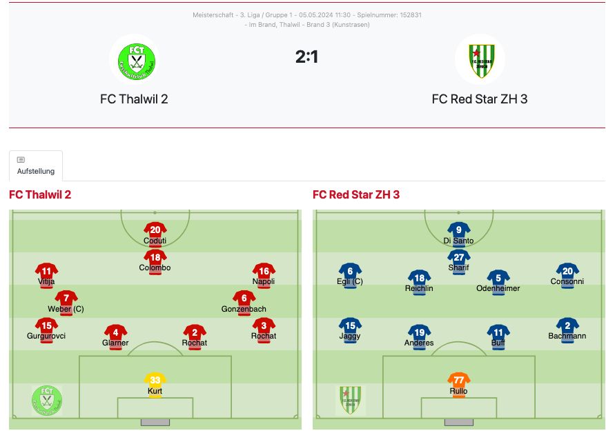 FC Thalwil 2 – FC Red Star ZH 3 2:1