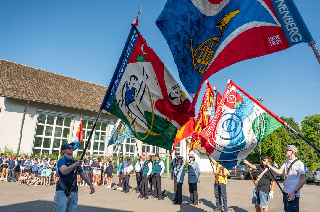 Beim Fahnengruss zeigte sich die gelebte Tradition und der starke Vereinszusammenhalt. Der anschliessende Umtrunk rundete den Empfang stimmungsvoll ab.