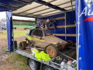 Den krönenden Abschluss bildete das Verlassen des Fahrerlagers. Anhänger und Wohnmobil mussten getrennt aus dem Fahrerlager geschleppt werden. Da dies nicht nur die beiden Autocross Piloten betraf, dauerte die Abreise entsprechend länger. Eines ist aber sicher, dieses Wochenende bleibt beiden in nasser Erinnerung.